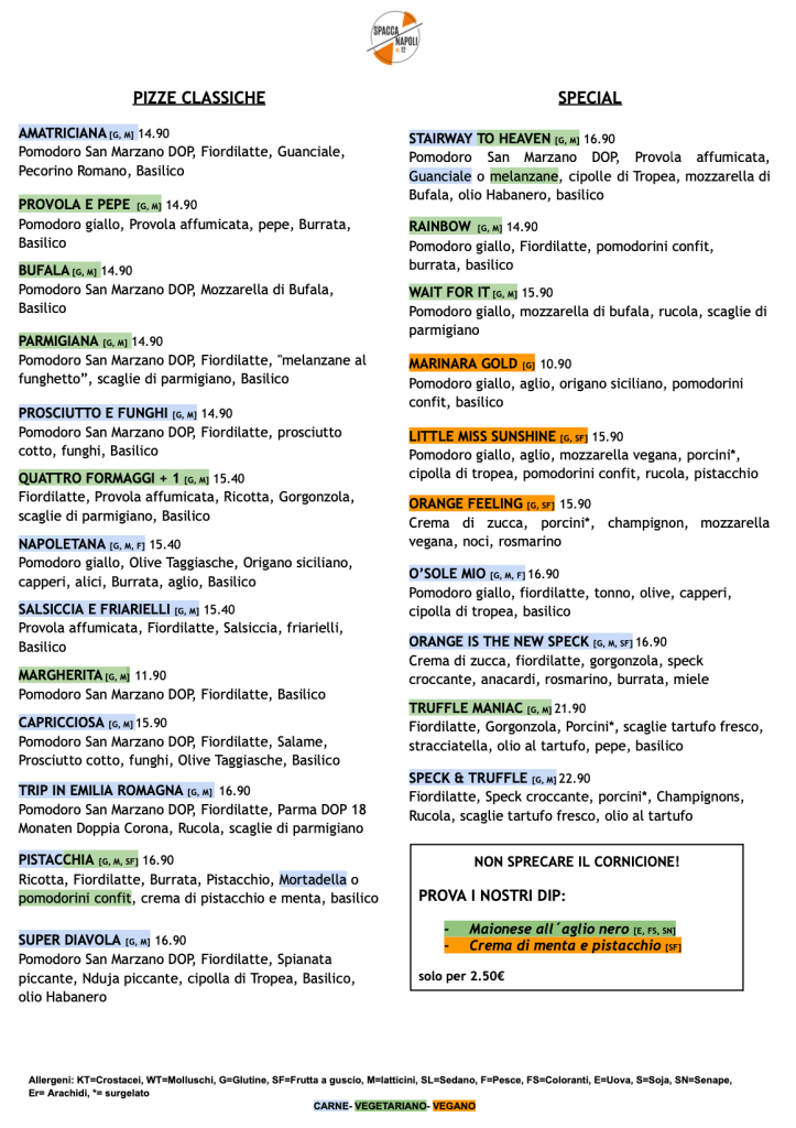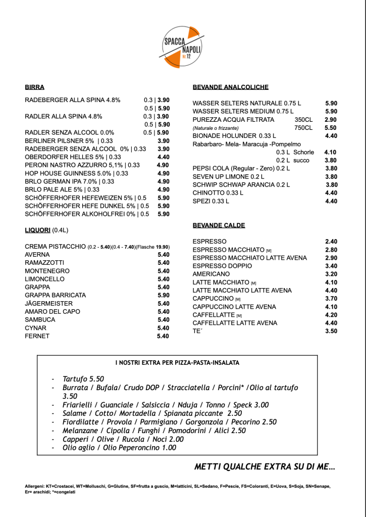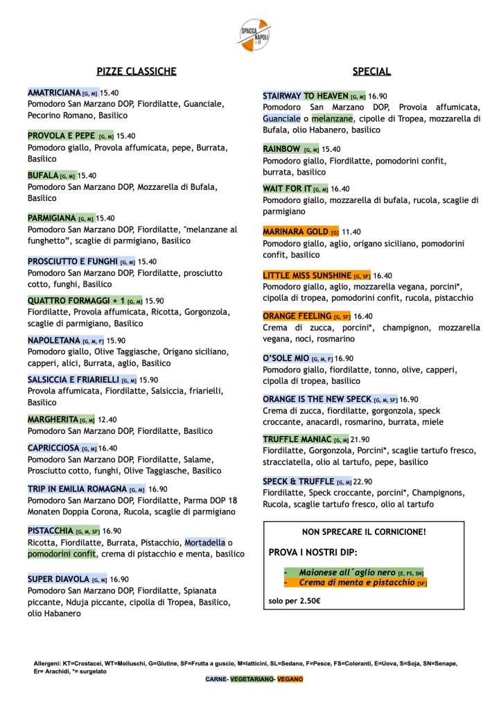 SPACCANAPOLI NR. 13 – MENÙ IN ITALIANO